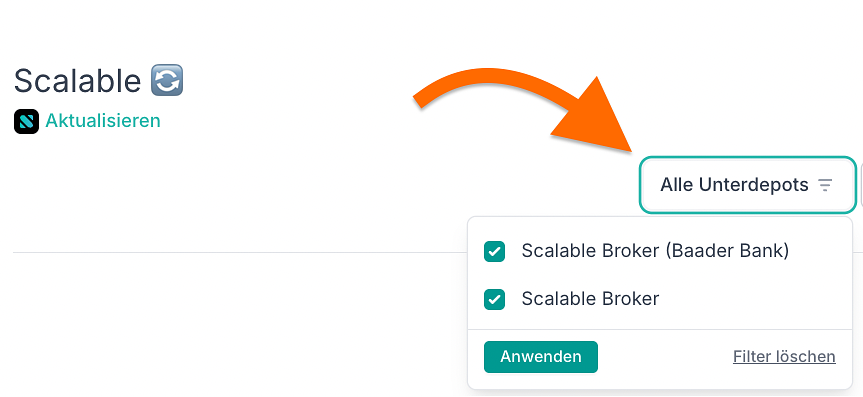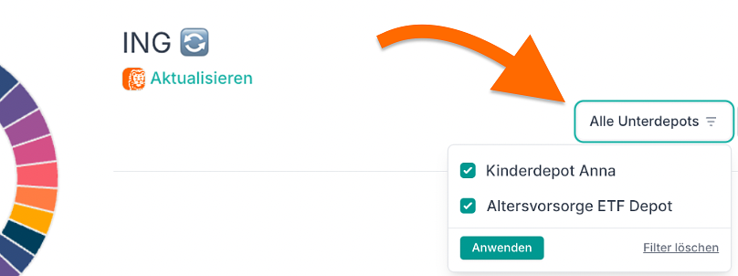 Auch in der Gesamtübersicht kannst du die Unterdepots jetzt filtern: