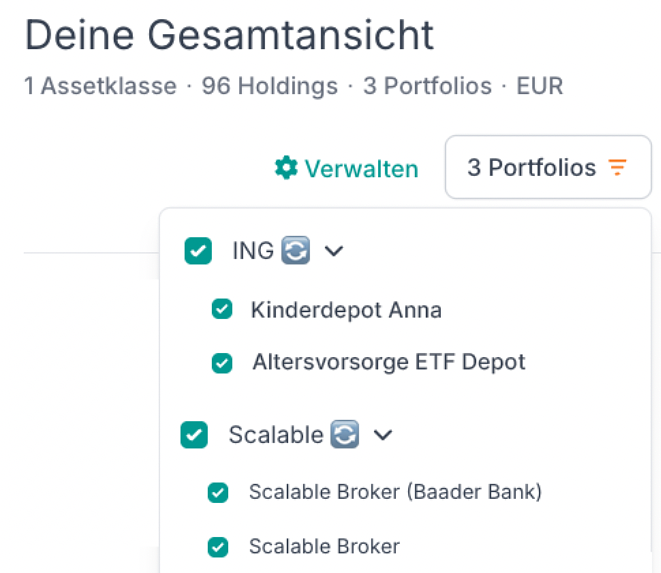 Wenn du im Autosync bei z.B. Scalable Capital oder der ING Zweitdepots oder Kinderdepots hast kannst du diese nun einzeln anzeigen lassen.