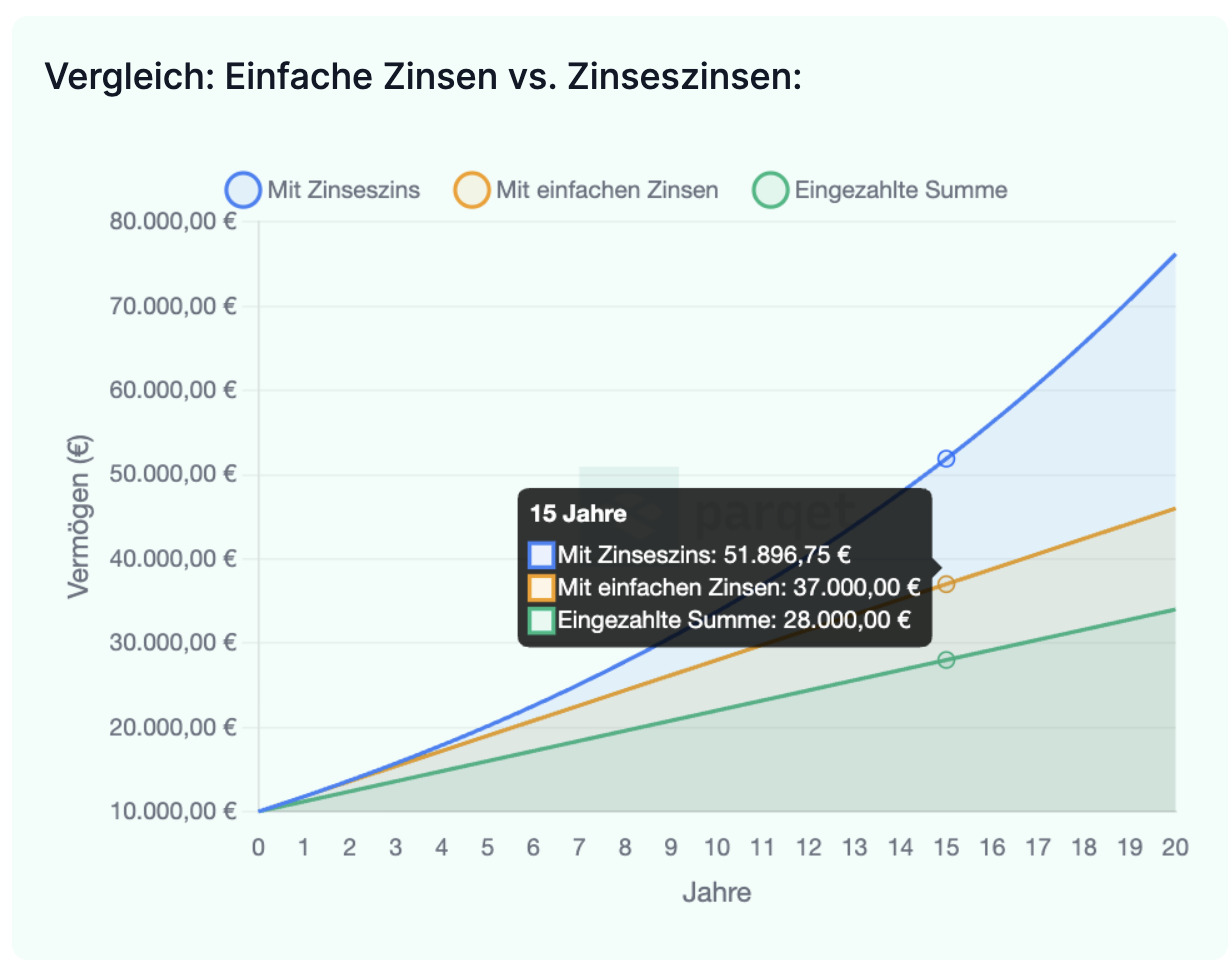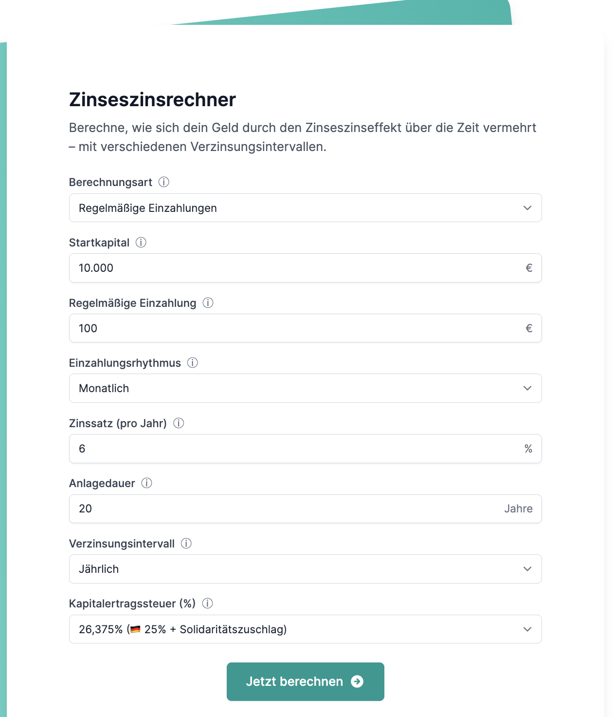 - Verzinsungsintervall (Wie oft werden die Zinsen zum Kapital hinzugefügt und selbst verzinst?)