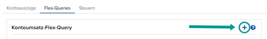 - Erstelle eine Kontoumsatz-Flex-Query in deinem Interactive Brokers Depot: Logge dich ein und wähle unter unter Performance und Berichte die "Flex-Queries" aus. Hier kannst du mit dem Klick auf das Plus-Symbol den Report erstellen.