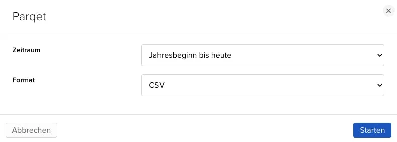 Wähle den Zeitraum aus, für den du die Transaktionen exportieren möchtest. Wähle anschließend CSV als Format aus.